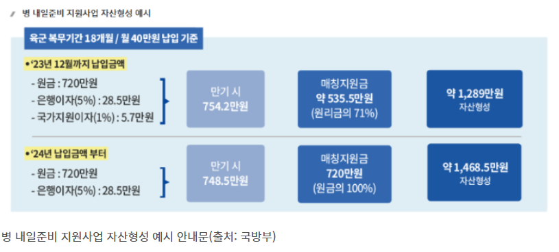 - '24년부터 적금 입금액의 100%를 적금 만기해지(복무만료) 후 재정지원