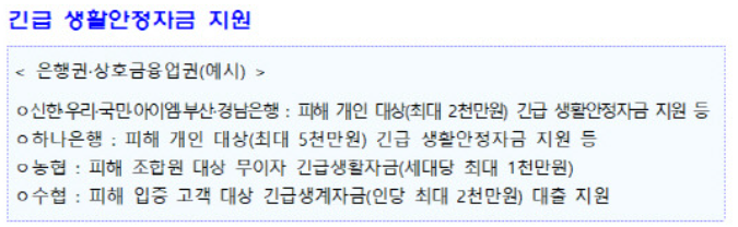 산업은행과 기업은행도 기업당 한도 내에서 긴급운영자금을 지원하고 있어, 사업 정상화에 큰 도움이 될 것입니다.