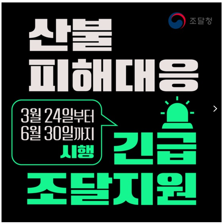 조달청은 산불 피해지역을 위한 특별 조치를 3월 24일부터 6월 30일까지 시행합니다.