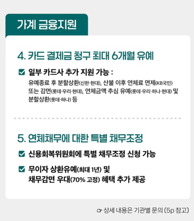 이 외에도 카드 결제금 납부를 최대 6개월까지 미룰 수 있고,