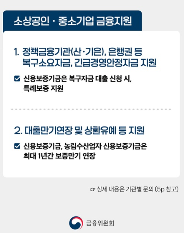 금융지원에 대한 자세한 상담은 금융감독원 내 금융상담센터(☎1332)에서 받으실 수 있습니다.
