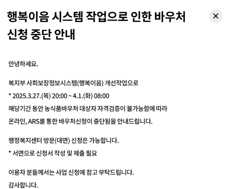 지금 바로 농식품 바우처 신청하고 건강한 식생활 시작하세요! 주민센터나 농식품 바우처 홈페이지를 통해 신청할 수 있습니다.