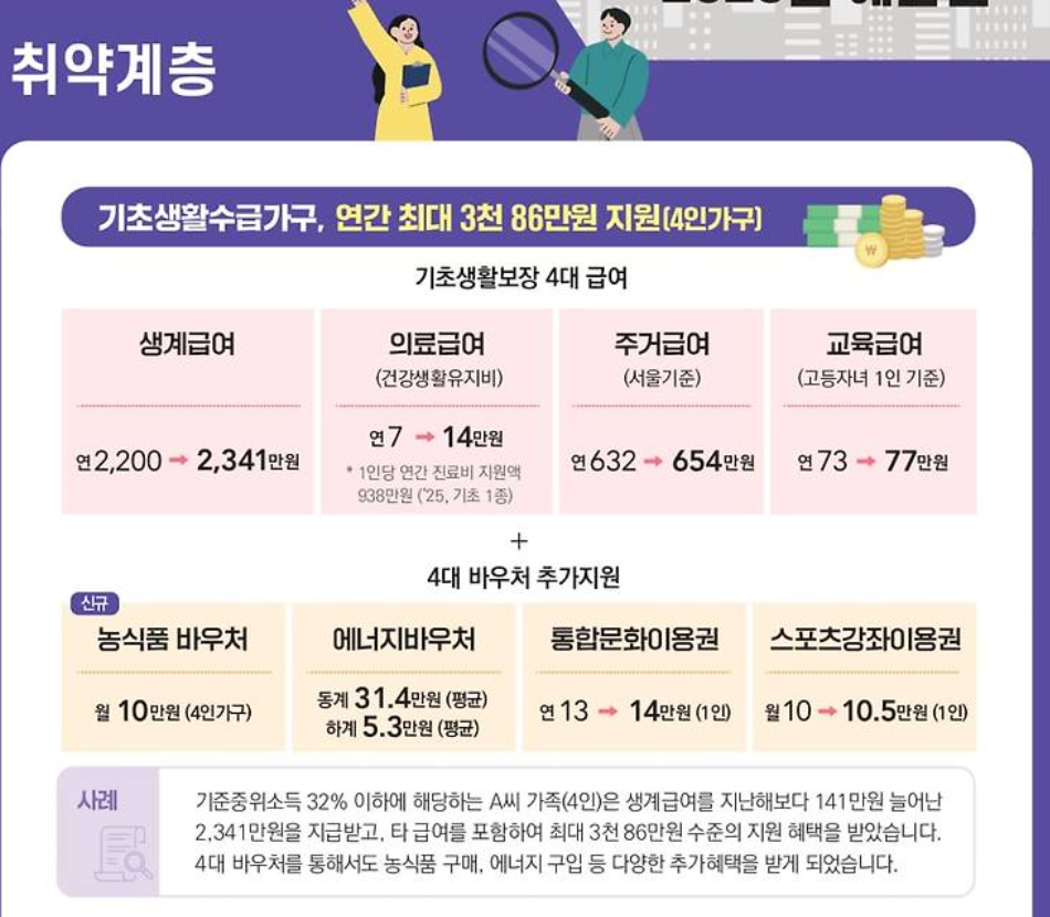 대상은 생계급여 수급가족(기준 중위소득 32%이하, 4인 가족 기준 월 194만1287원 이하) 가운데 임산부, 18세 이하 아동이 있는 가구