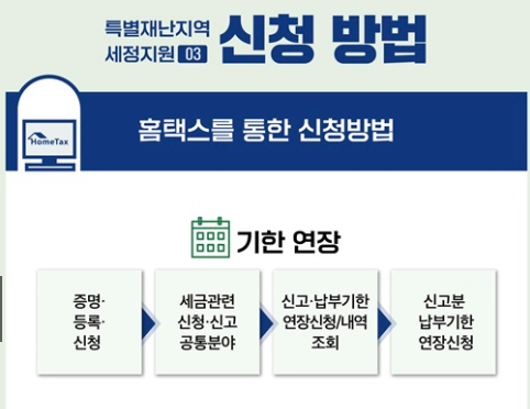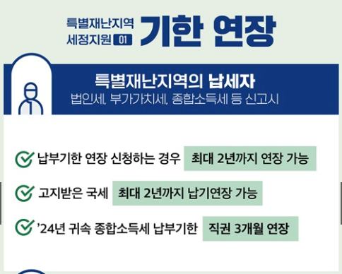 더 자세한 내용은 국세청 재해 세정지원 전용 페이지(바로가기)에서 확인하실 수 있으며,
