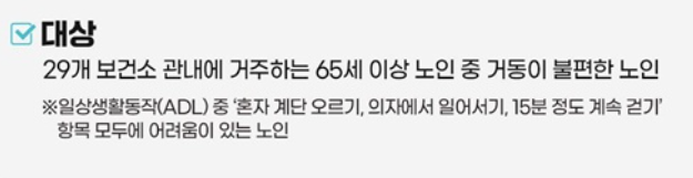 정리하면 65세 이상 노인 중 거동이 불편한 노인이 대상입니다.