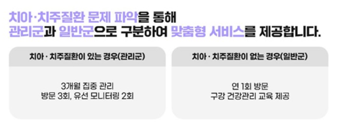 일반군(치아·치주질환 문제 미보유): 연 1회 방문관리 등 제공