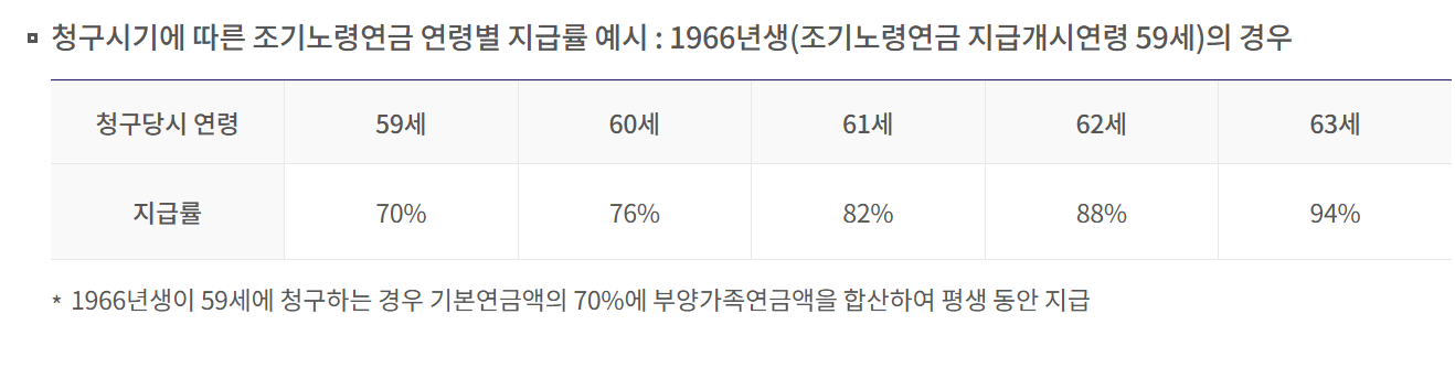 반대로, 연금을 일찍 받고 싶다면 조기 수령도 가능합니다.