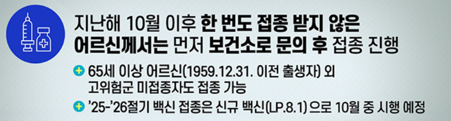 원래 2024-2025절기 접종 기간은 2025년 4월 30일(수)까지였지만, 만 65세 이상 고위험군을 대상으로 접종 기간이 2025년 6월 30일(월)까지 연장되었어요. 아직 접종하지 않으셨다면 이 연장된 기간 내에 꼭 건강을 지키는 백신을 맞으시길 바라요! 가까운 접종 기관은 '예방접종도우미' 누리집을 통해 쉽게 찾아볼 수 있으니, 꼭 확인해 보세요 . 방문 전에 의료기관에 미리 문의해 보는 것도 좋겠죠!